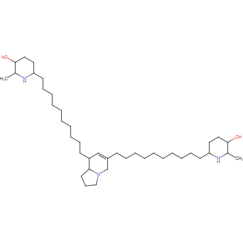 | Canonical SMILES: | CC1C(CCC(N1)CCCCCCCCCCC2C=C(CN3C2CCC3)CCCCCCCCCCC4CCC(C(N4)C)O)O | ||||||||||||||||||||||||||||||||||||||