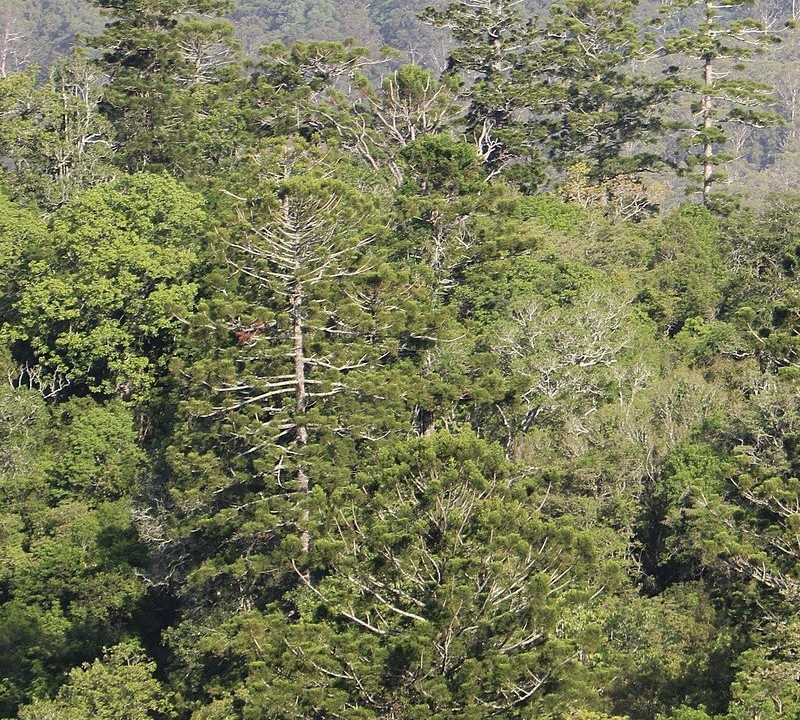 narrow crown with horizontal branches makes it a striking feature in rainforest