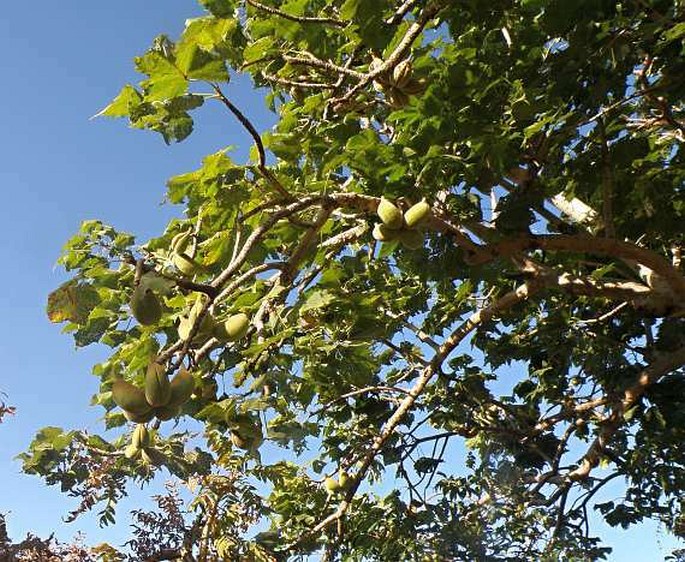 exuding a white gum (Tropical Plants Database, 2024). Leaves are large, simple,